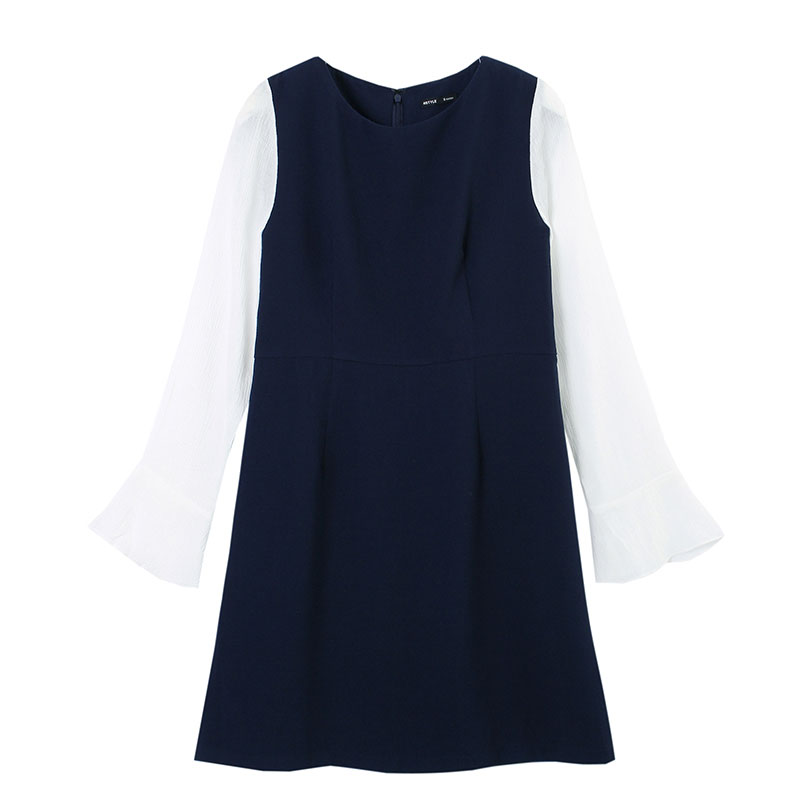 商品名称:韩都衣舍2017春装新款女装春款拼接喇叭长袖连衣裙中长款时尚韩版 领券立减/单件包邮/七天无理由退换